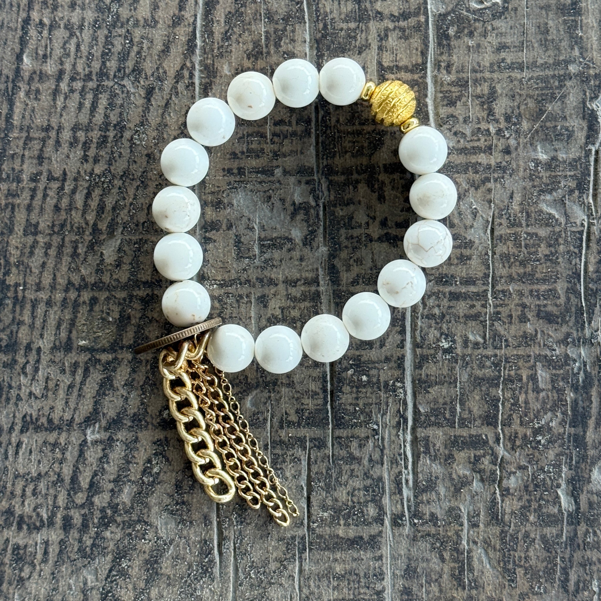 - White Turquoise, gold ball, gold chain & spacers, and real coin