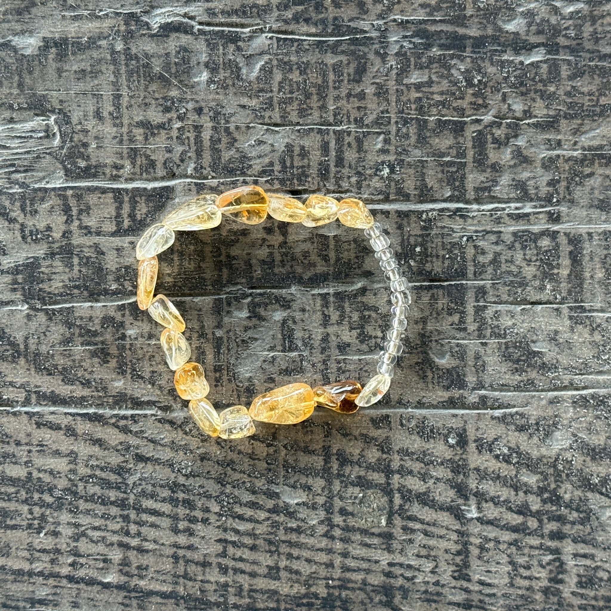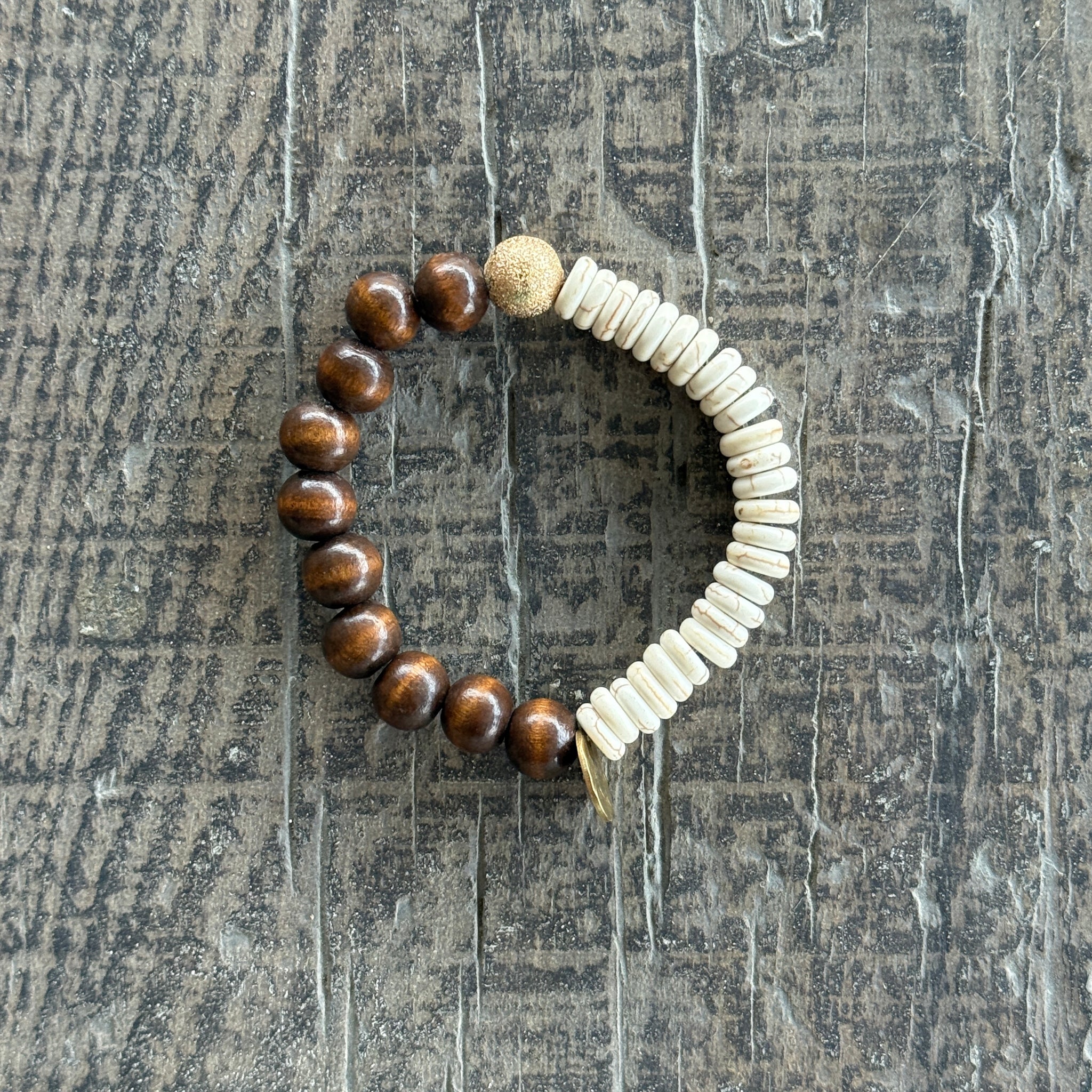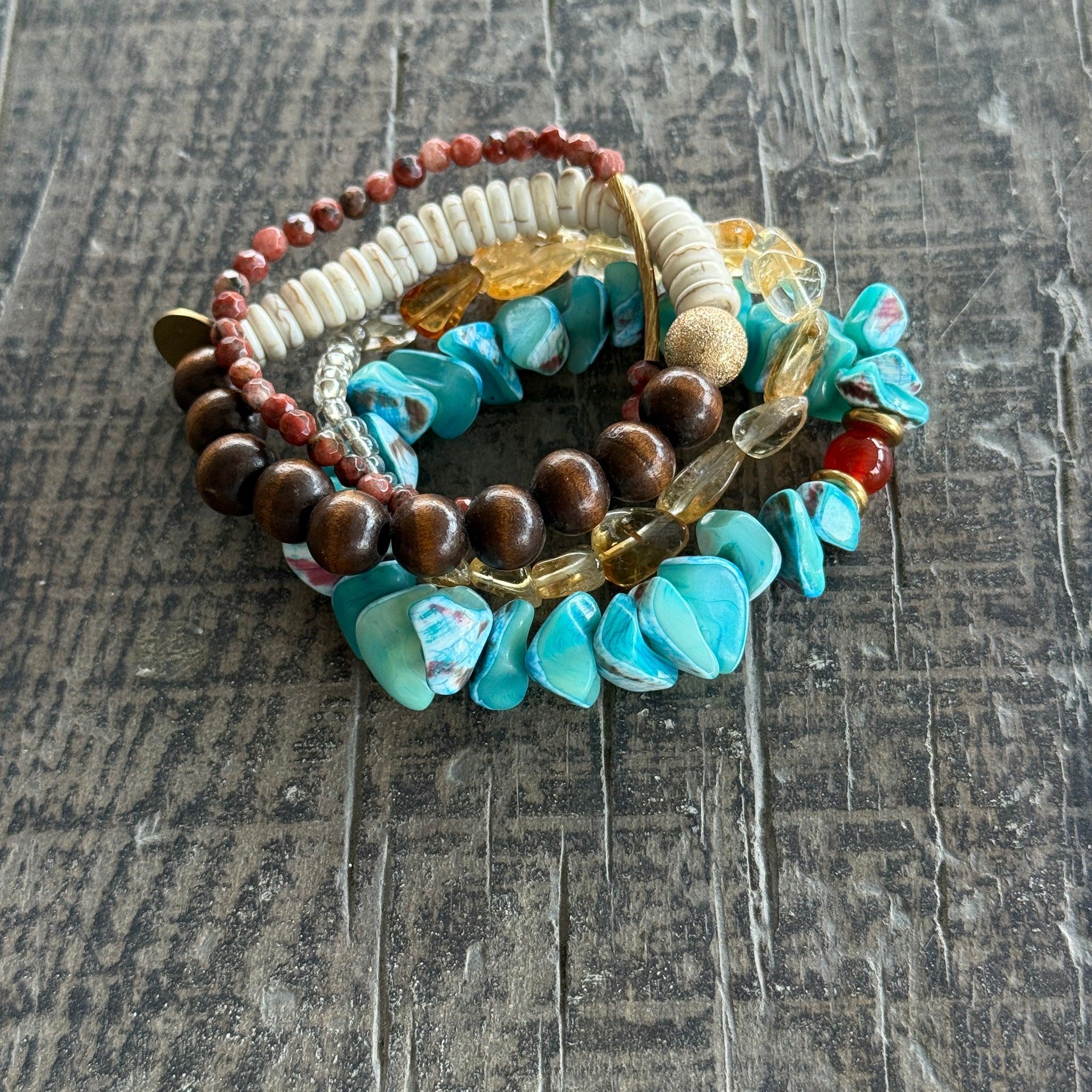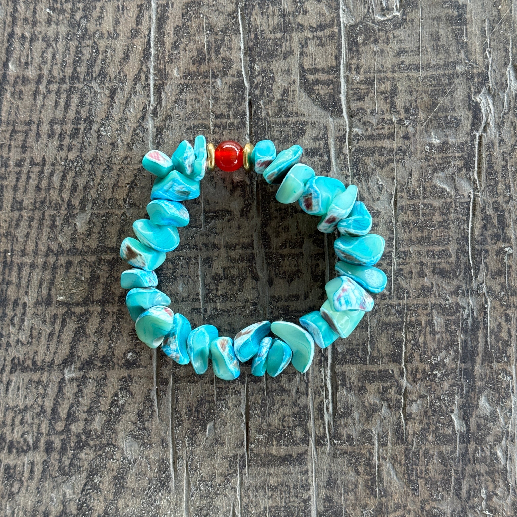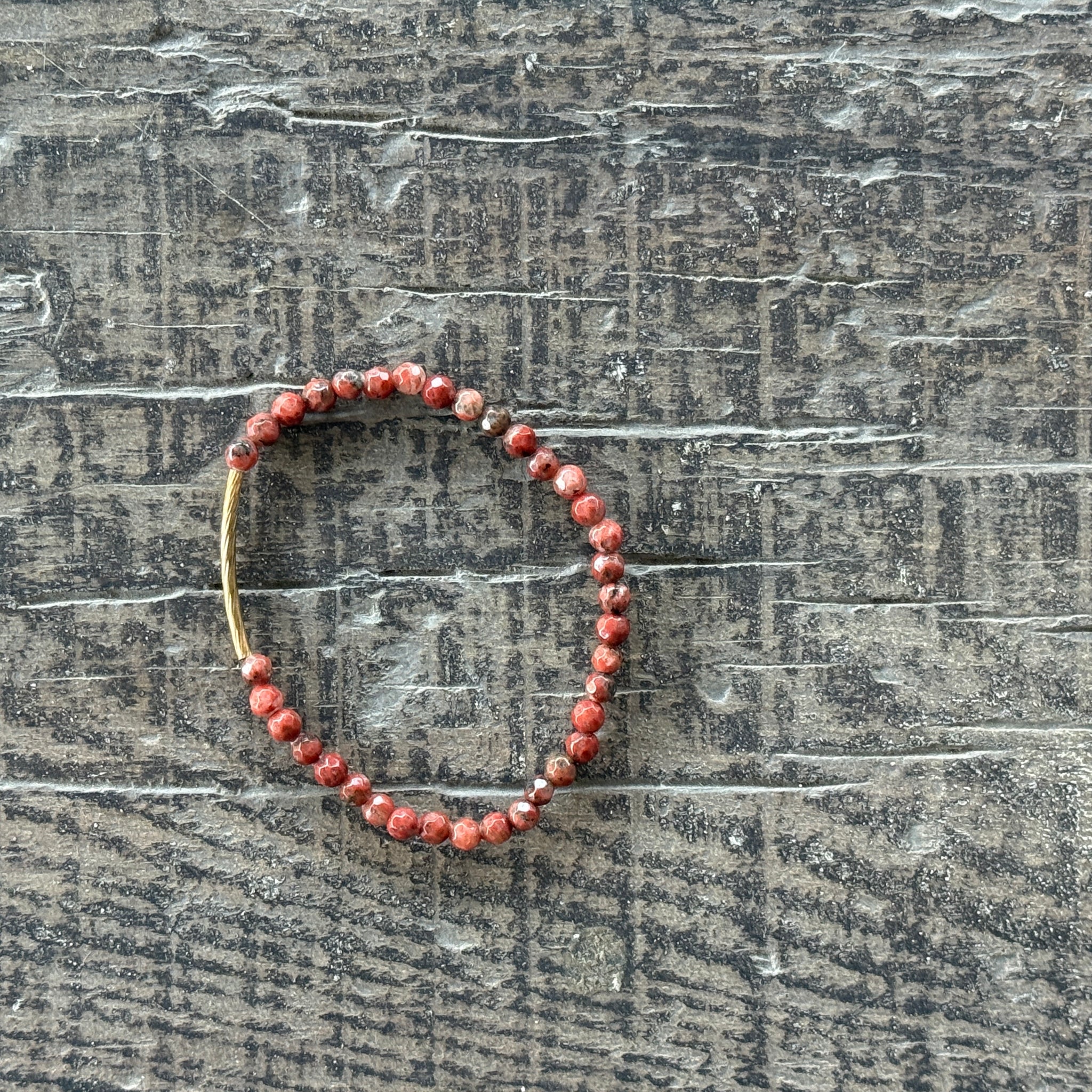All bracelets are elastic and stretch over the hand. They are handmade in the USA. Unless otherwise specified any metal descriptions indicating gold, silver, bronze, etc. are intended to describe color and not the actual metal material.