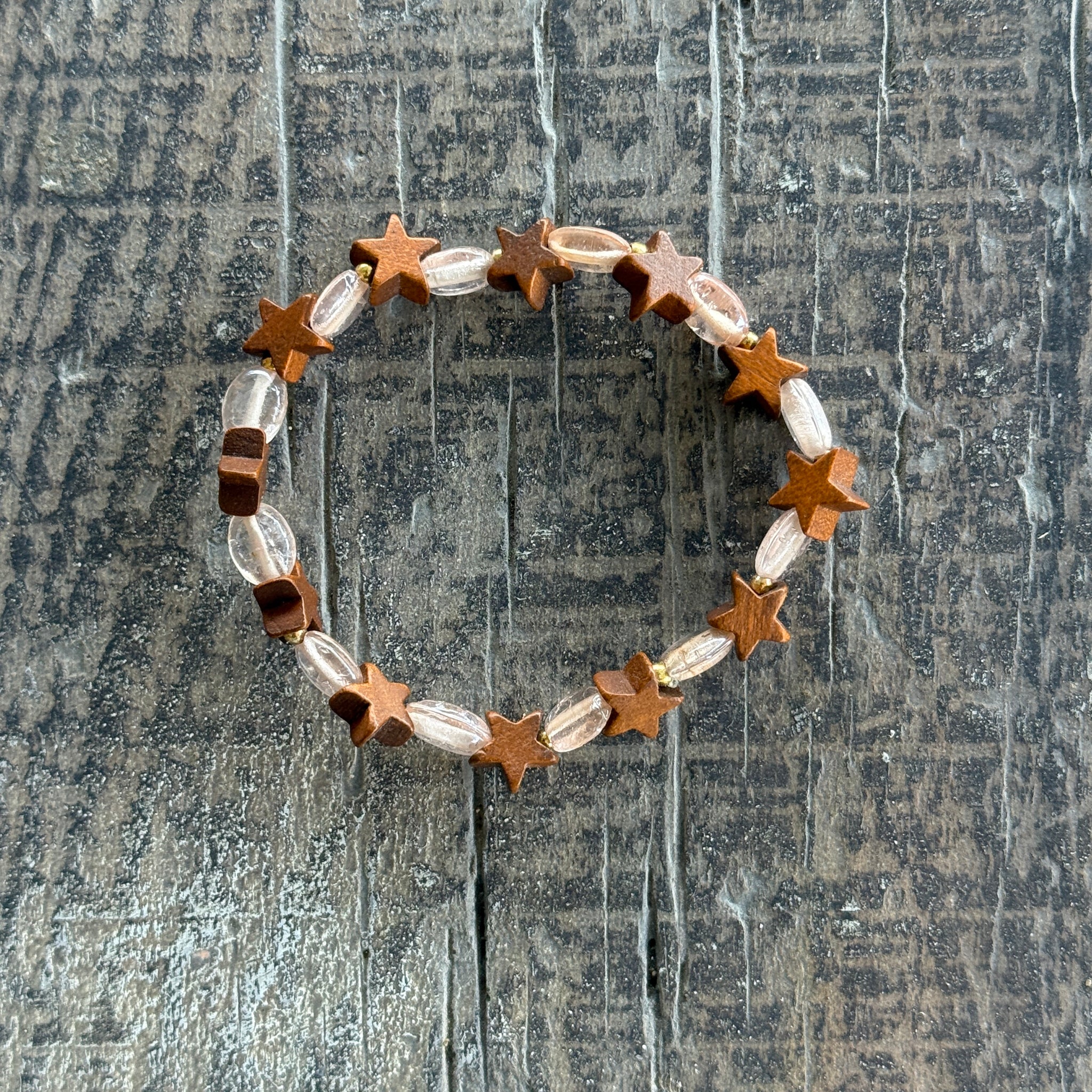 - Wood stars and pink glass beads
