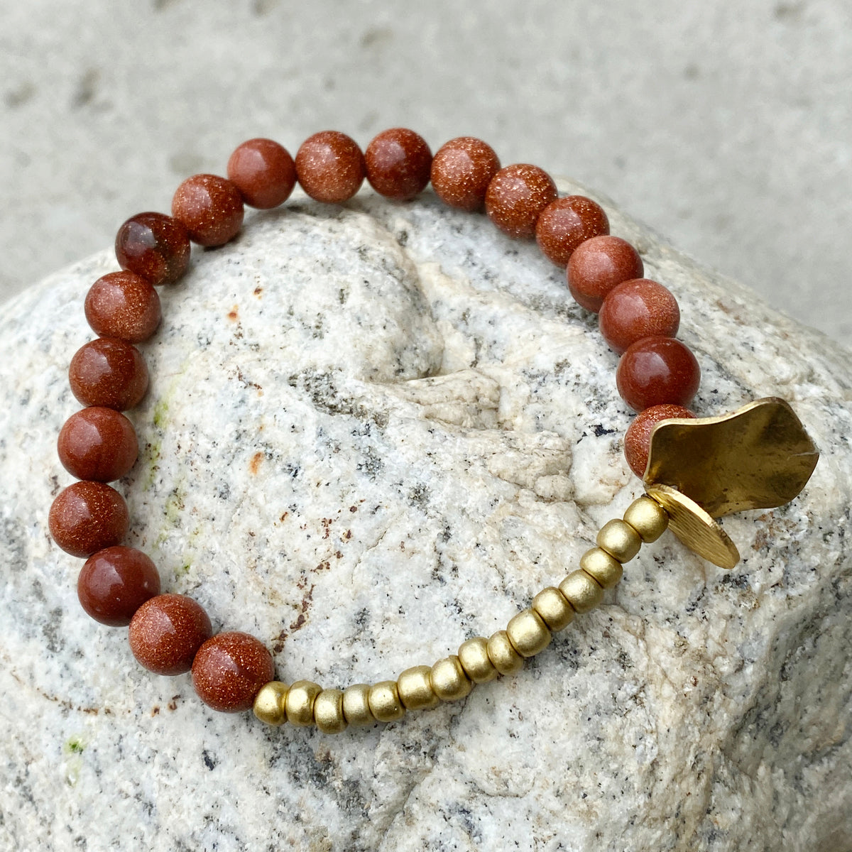 (2) 8mm Gold Sand beads and small golden beads and 2 accent coins.