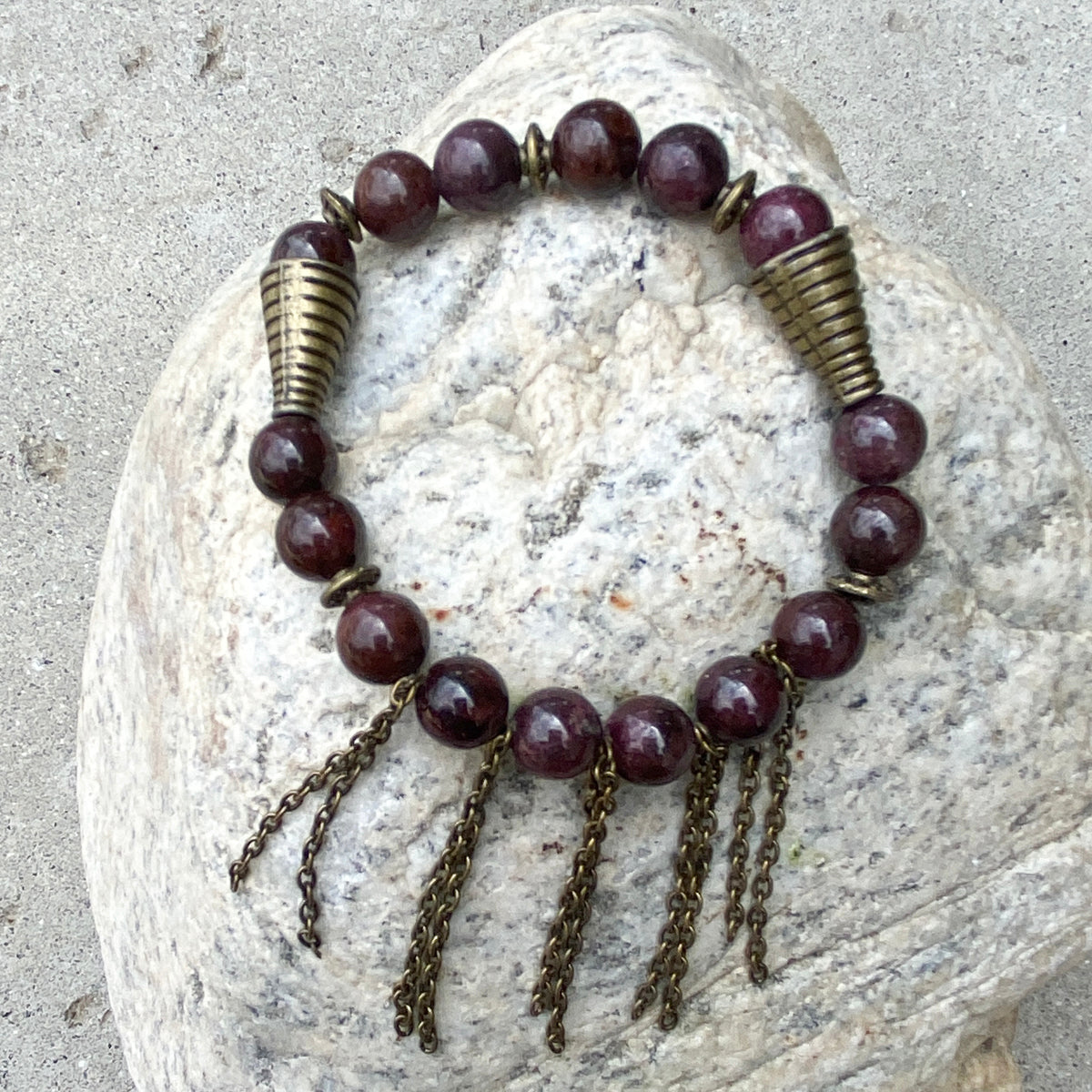 (3) 8mm Garnet with bronze chains and decorative spacers.